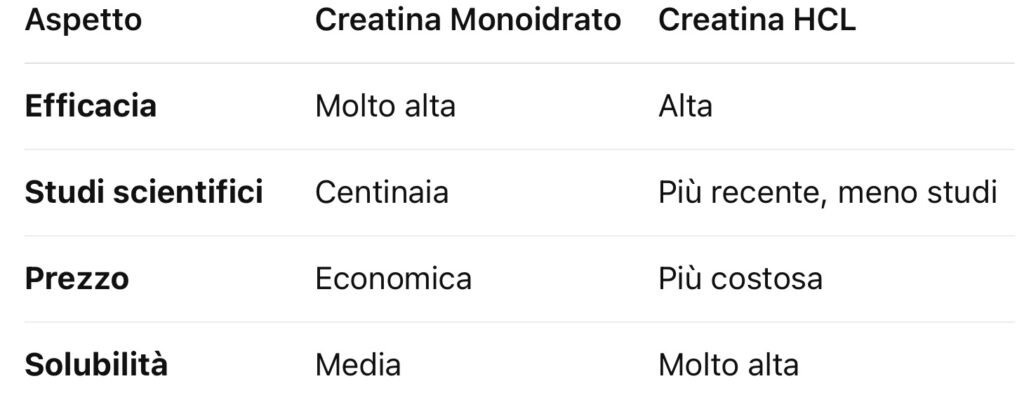 Opta per creatina HCL, più leggera, solubile e senza ritenzione idrica.